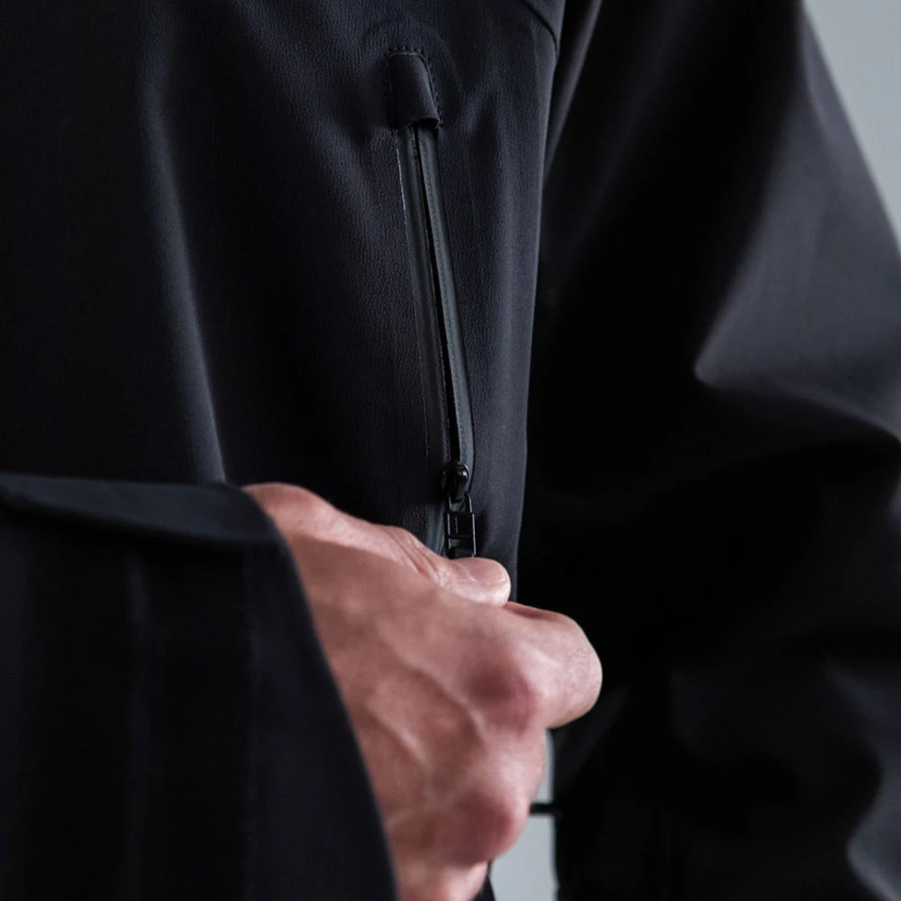 - feste, helmkompatible und voll verstellbare Kapuze mit Sturmklappe